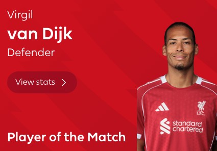 英超第33轮,利物浦客场2-1击败埃弗顿,此役打入绝杀进球的利物浦后卫范戴克当选全场最佳球员。